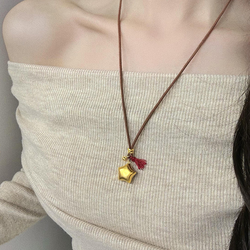 Reno gold origami star pendant women's new 999 pure gold niche design necklace birthday gift for girlfriend