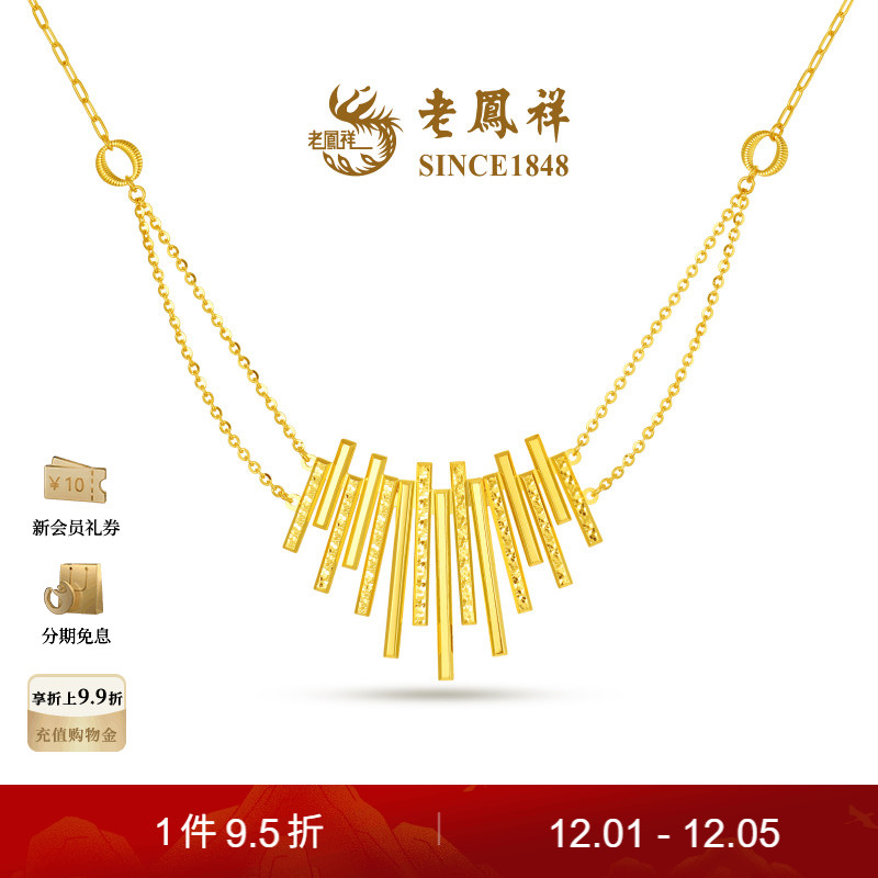 Lao Feng Xiangfan series geometric rhythm notes gold pure gold necklace women's Christmas gift crushed ice price