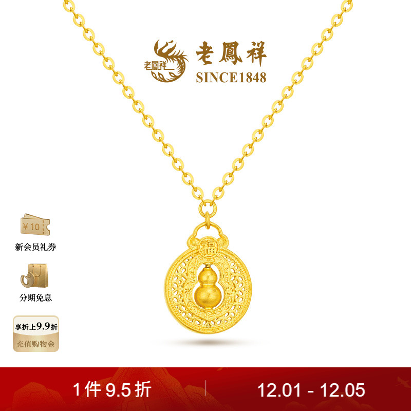 Lao Fengxiang Fulu gourd hollow filigree gold pure gold necklace can be rotated for holiday gift gift pricing