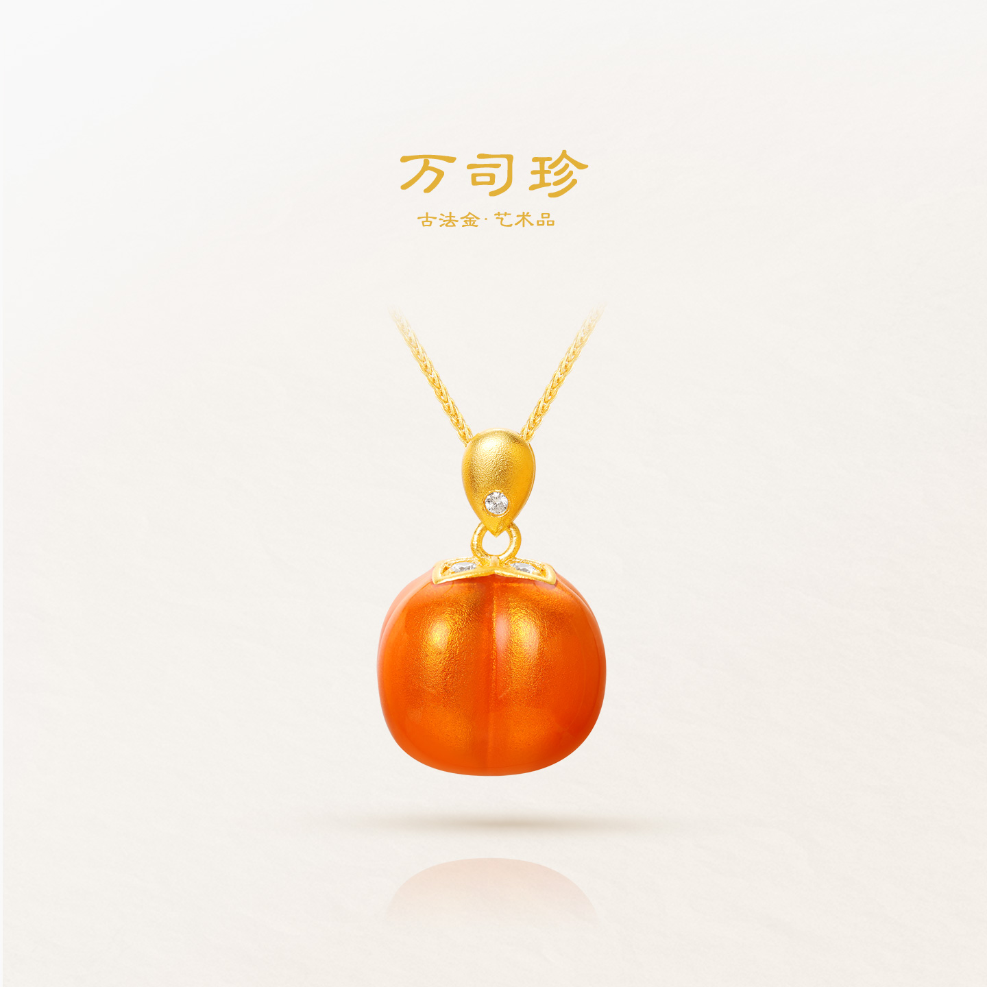 Wan Sizhen's handmade ancient gold persimmon persimmon ruyi pendant pure gold pendant diamond-inlaid pure gold gift
