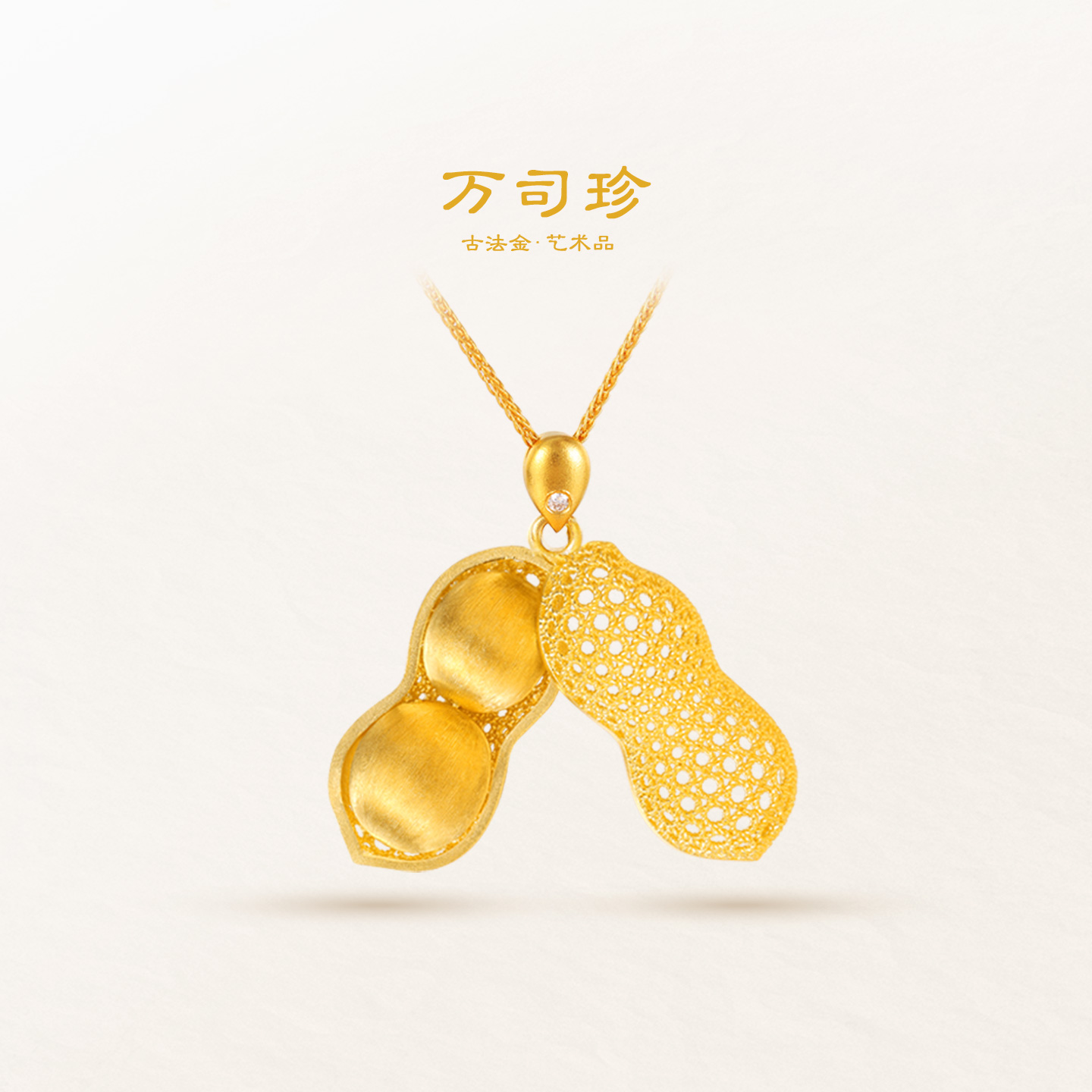 Wan Sizhen's handmade ancient gold good things happen peanut pendants pure gold necklace diamond inlaid pure gold gifts
