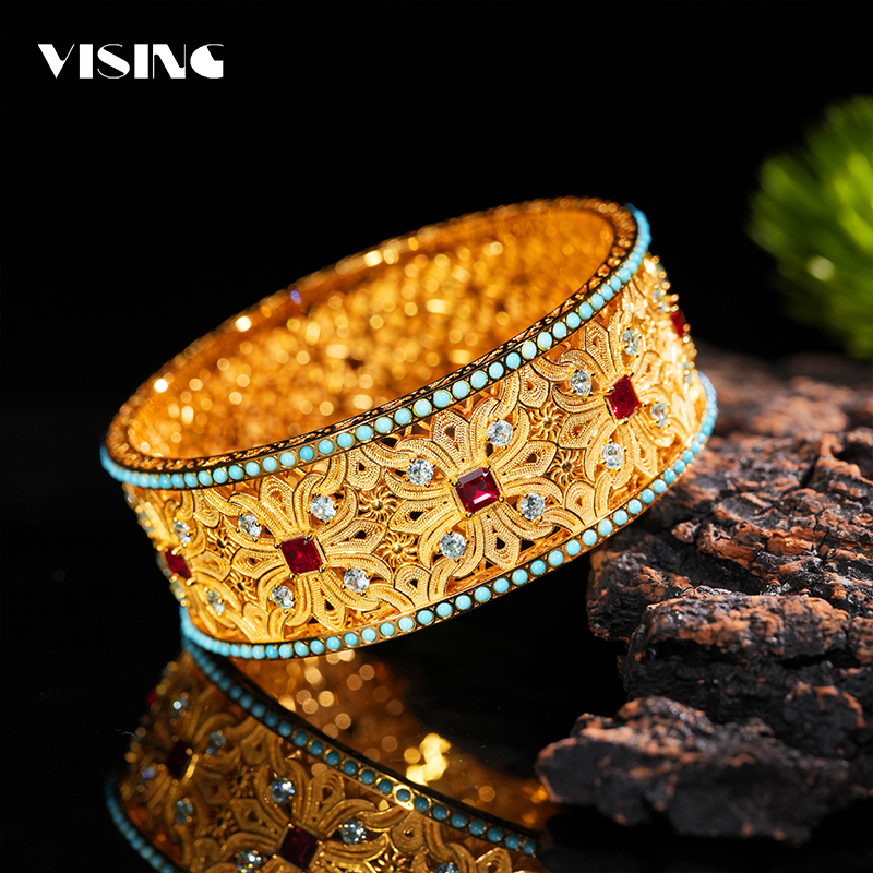 VISING court style retro gold bracelet handmade bracelet cultivation ruby national style