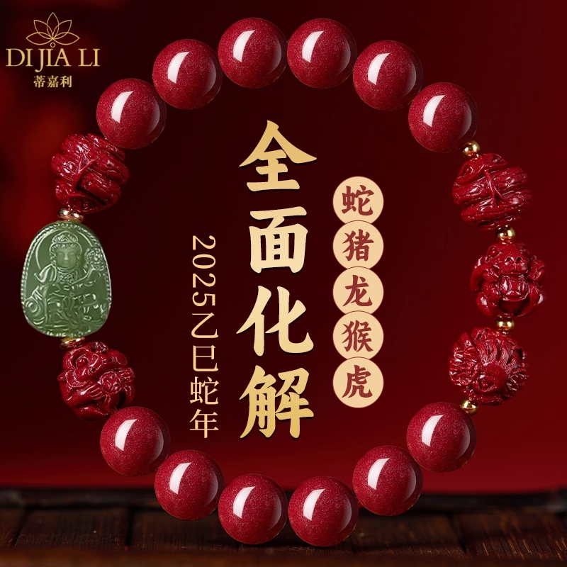 Putuo Mountain 2026 bracelet horse natal year cinnabar bracelet pig tiger monkey three-in-six gift