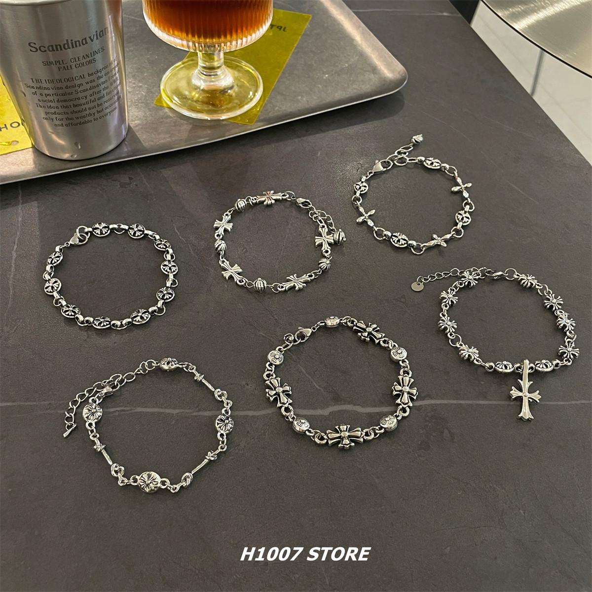 Aged cross flower men's bracelet, women's hip-hop, street cool style, niche design, high-end light luxury couple hand jewelry