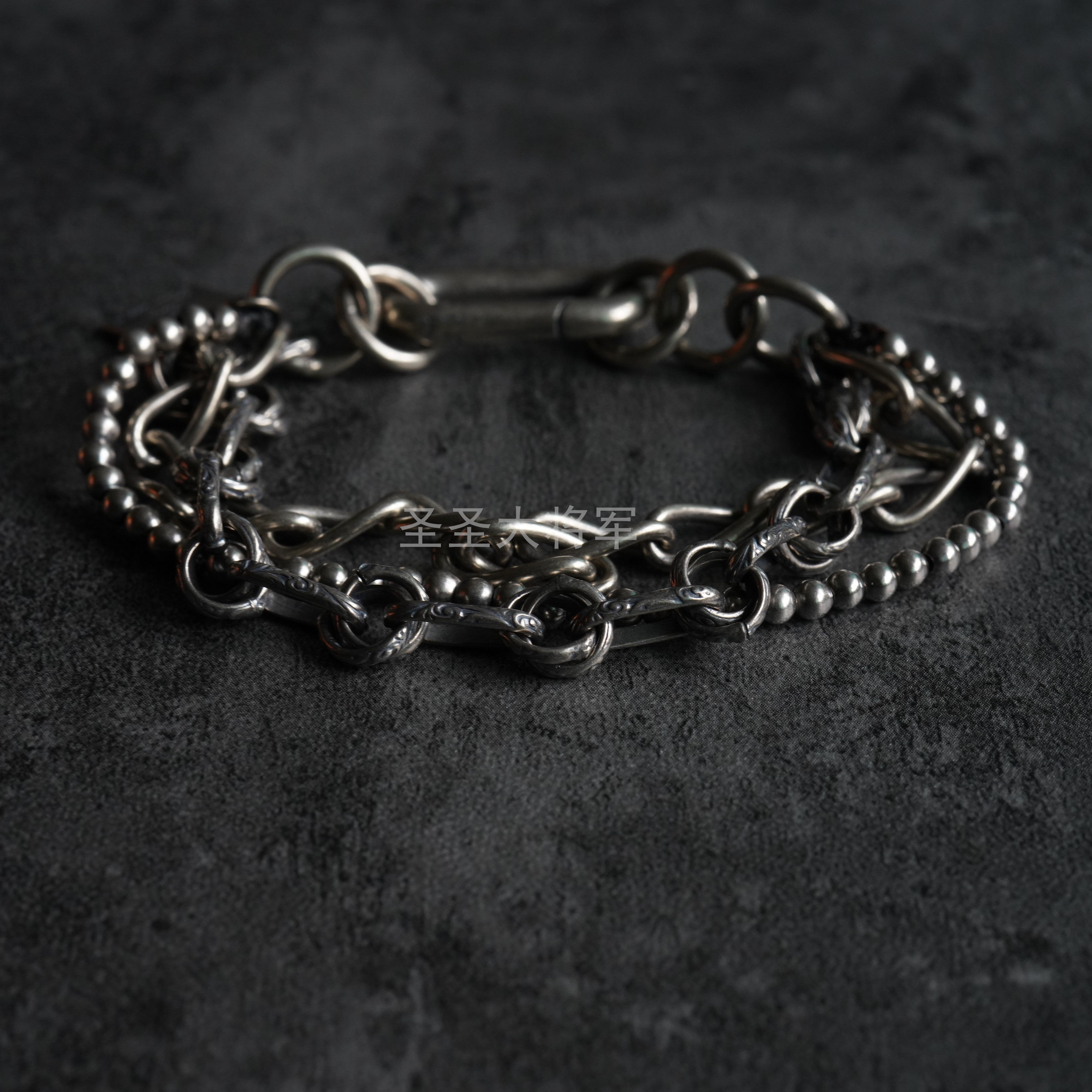 【In stock】Goti Dark Pioneer Embossed Hybrid Chain Sterling Silver Bracelet
