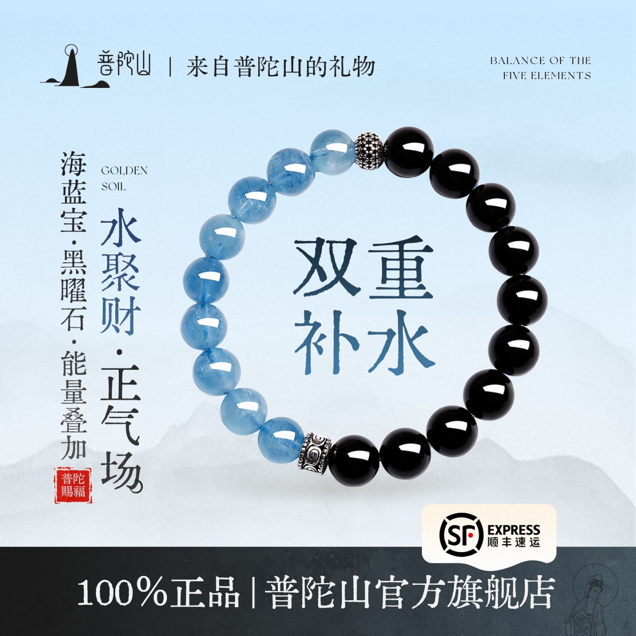 Putuo Mountain Obsidian Aquamarine Bracelet Women's Official Natural Crystal Bracelet Gift for Girlfriend