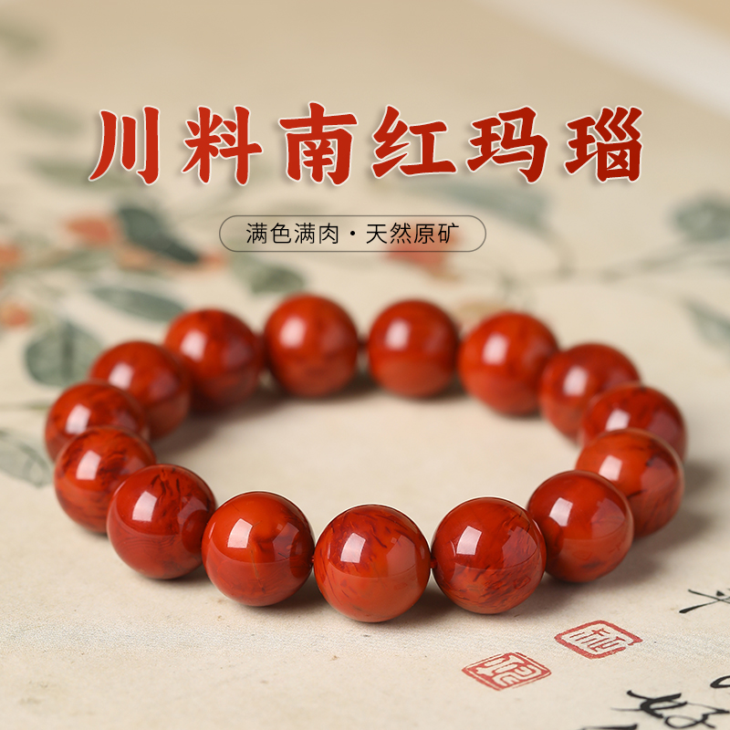 Natural southern red bracelet Sichuan material Waxi old mineral material two-color single-circle bracelet nine mouths flame pattern full color full of flesh Buddha beads