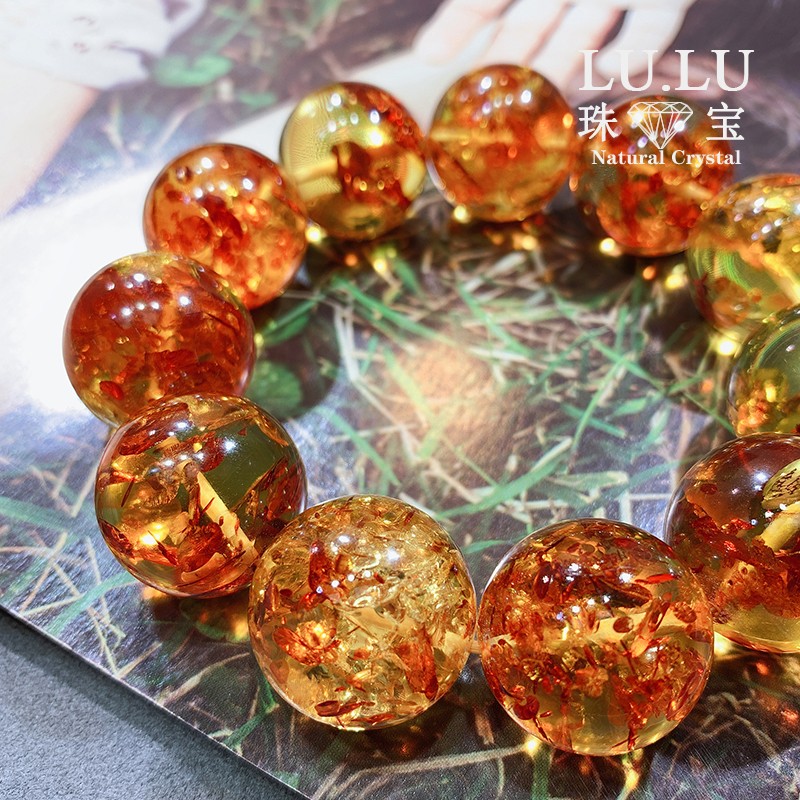 Time precipitates the drunken color Baltic flower amber bracelet