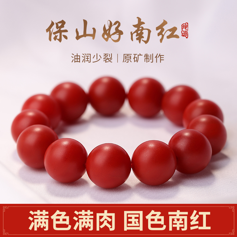 Pure natural Baoshan South red bracelet collectible single circle agate bracelet full of color full of flesh persimmon red natal year Buddha beads
