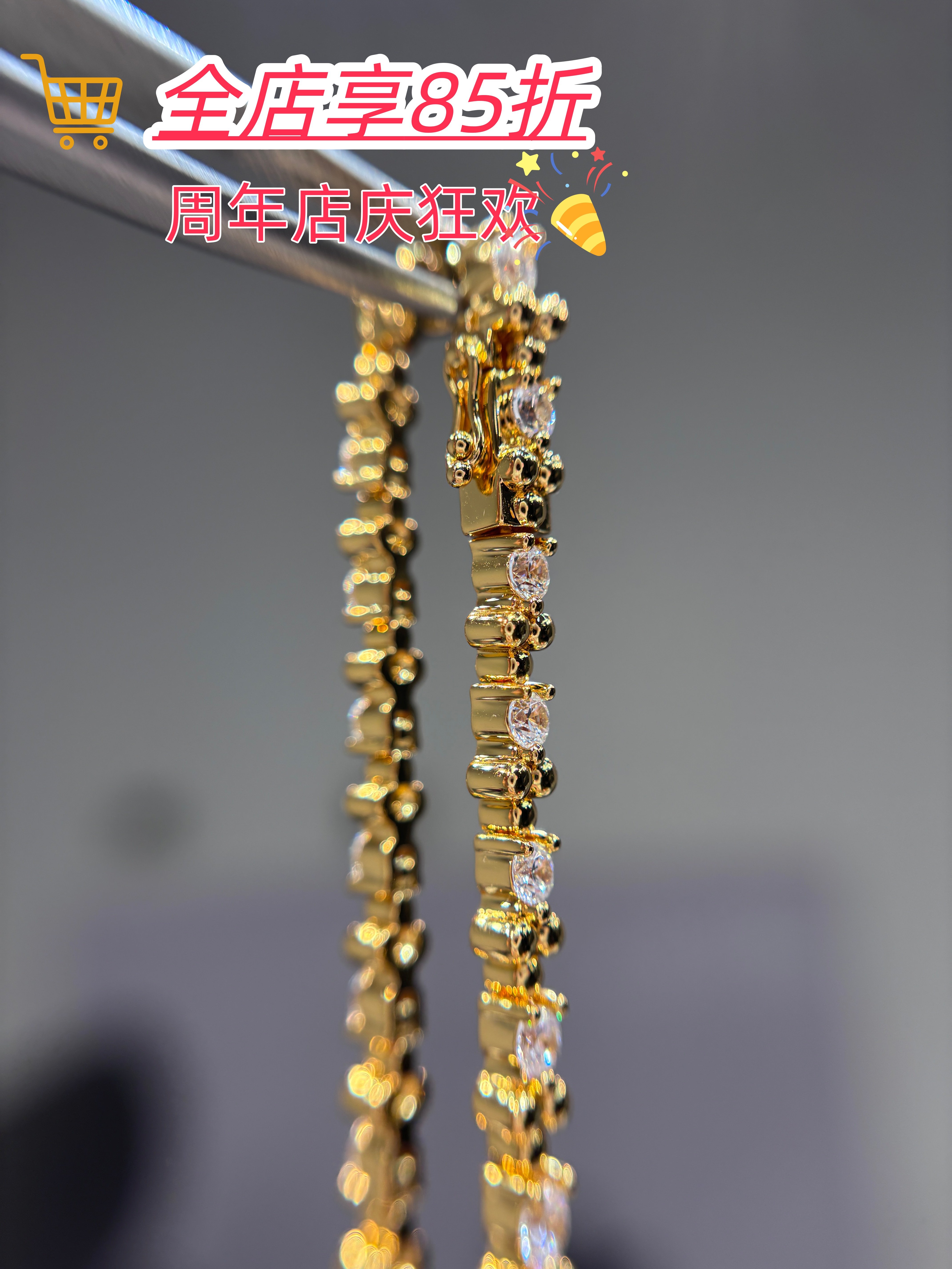 Bracelet S925 silver thick plated real gold tennis bracelet three-pronged bubble set with diamonds Light luxury and versatile high-end sense
