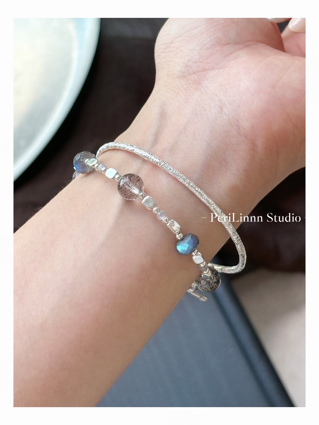 PeriLinnn "Xuanmo" original natural gray moonlight glitter sterling silver bracelet minimalist gray neutral gift