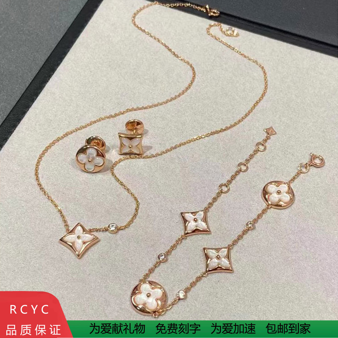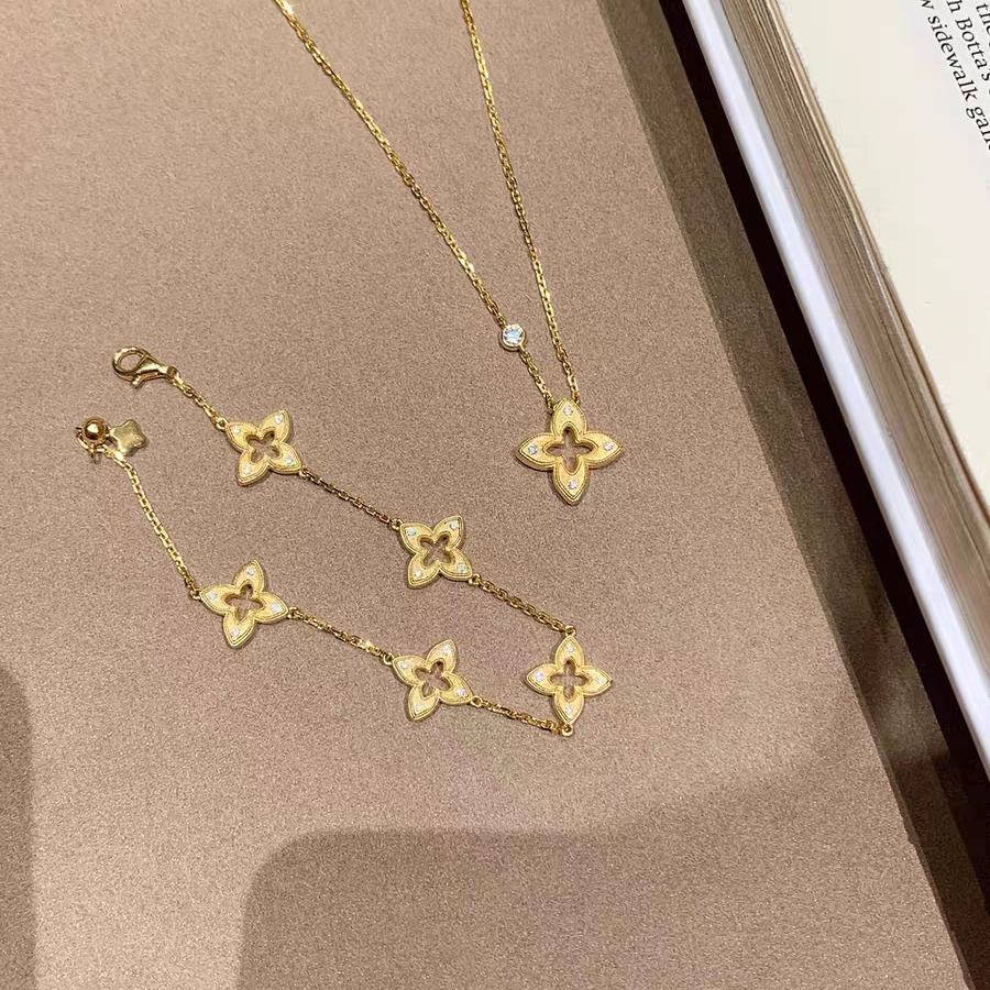 Classic sterling silver LOVE diamond clover white fritillary four-flower five-flower bracelet necklace stud earrings