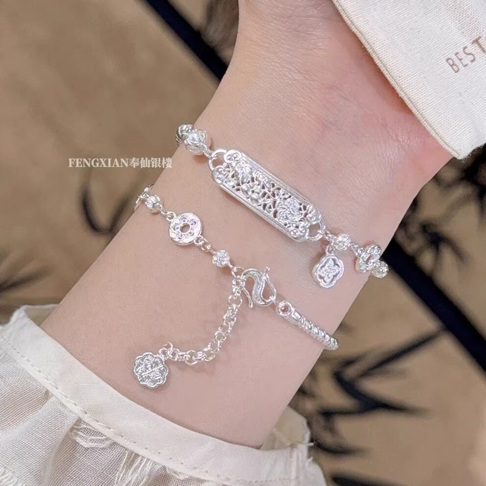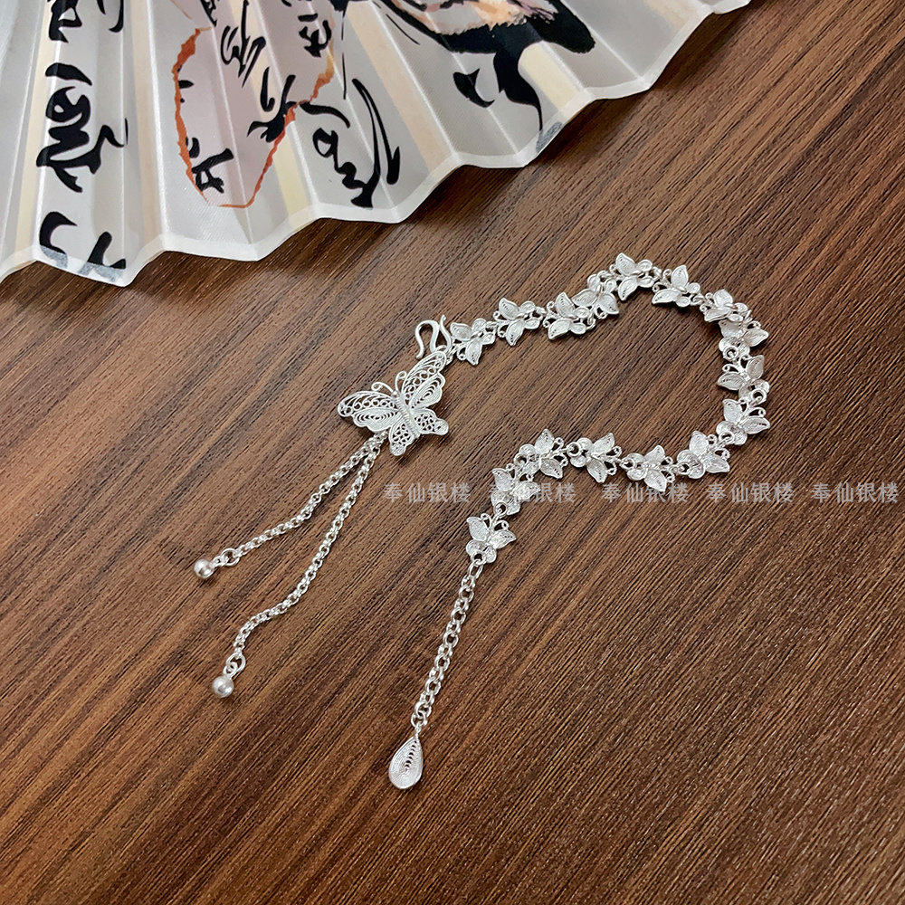 "Filigree Butterfly" butterfly foot silver bracelet women's sterling silver new Chinese style silver jewelry bracelet for girlfriends as a holiday gift