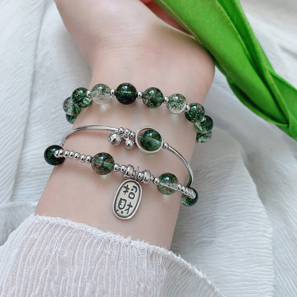 S925 sterling silver lucky green ghost bracelet female green crystal bracelet bell transfer bead 520 girlfriend girlfriend gift