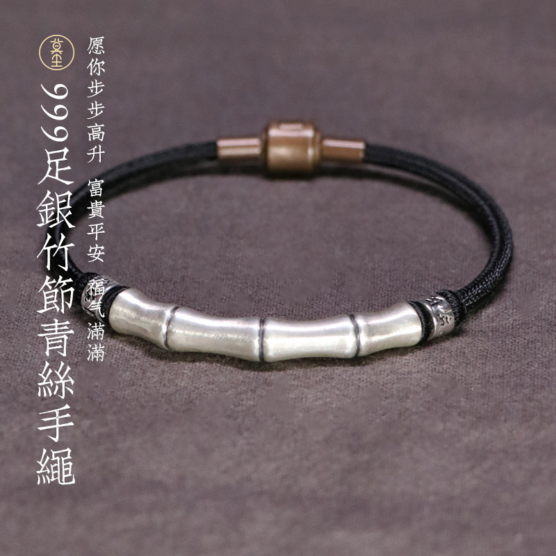 999 silver bamboo bracelet men's sterling silver braided hair gift nine times Kasyapa diamond knot bent pipe couple green silk bracelet