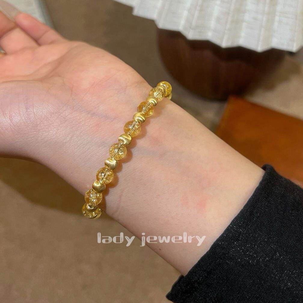 Lady's Haute Couture S925 silver-plated real gold full eyeball citrine bracelet 6mm pullable