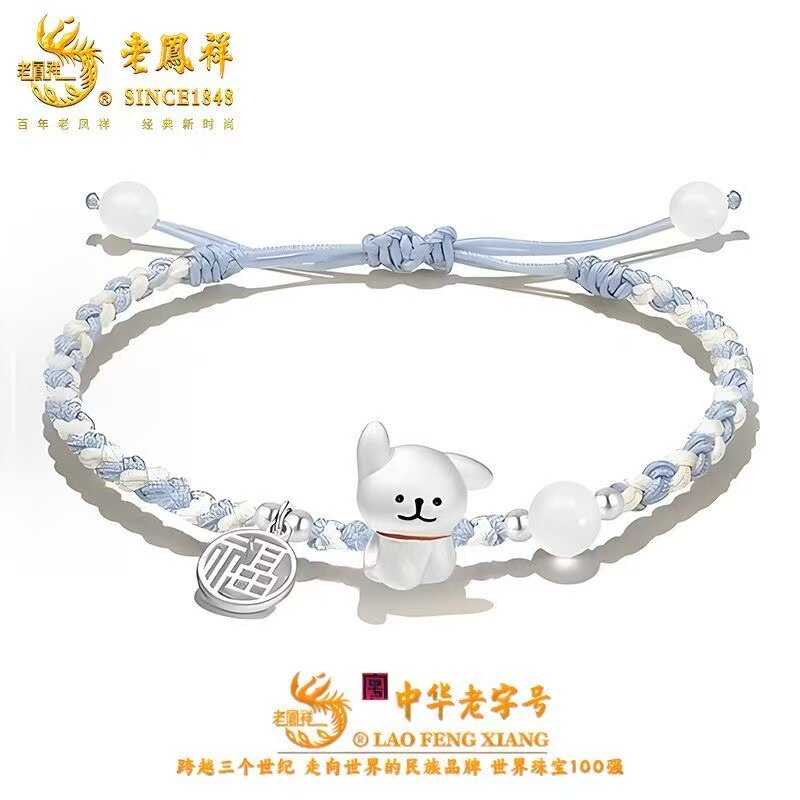 Lao Fengxiang 999 foot silver cute line puppy bracelet sweet woven bracelet Qixi gift box for girlfriend and wife