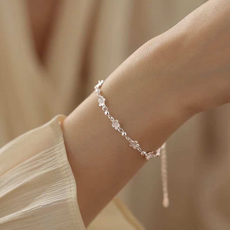 Brightness 999 foot silver temperament flower bracelet women's versatile sterling silver design small fresh fashion silver beads small flower hand jewelry