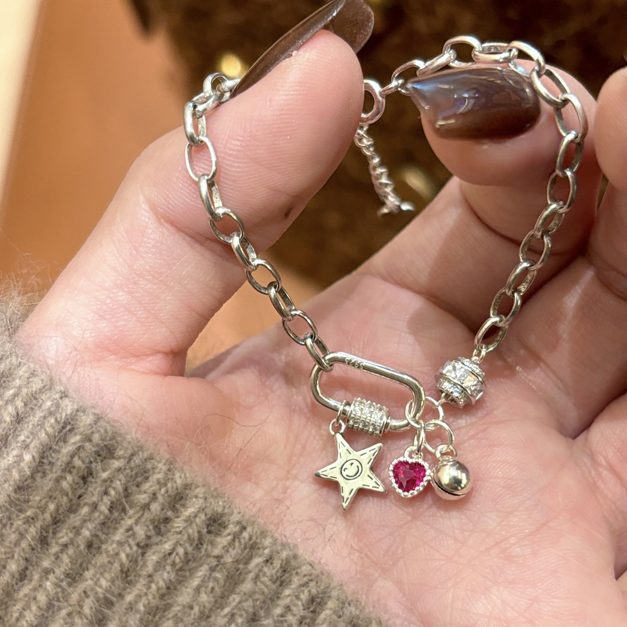 "Heartbeat Signal" niche light luxury bracelet style high-end sense gypsophila versatile ring buckle silver bracelet women's about 4g