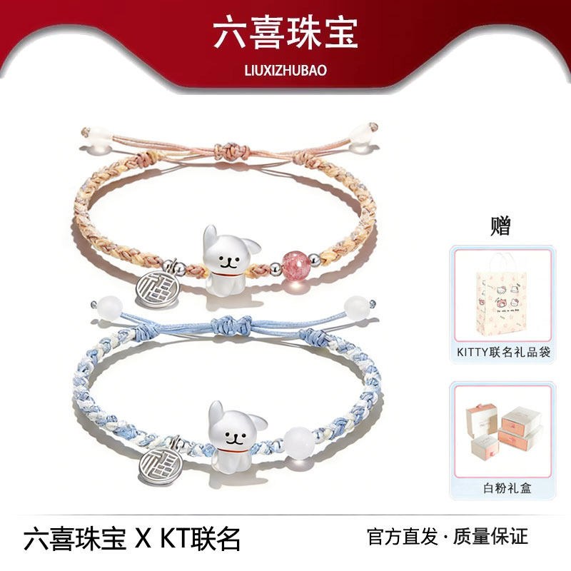 S925 foot silver cute line puppy sterling silver bracelet female niche high-end love couple bracelet for wife gifts