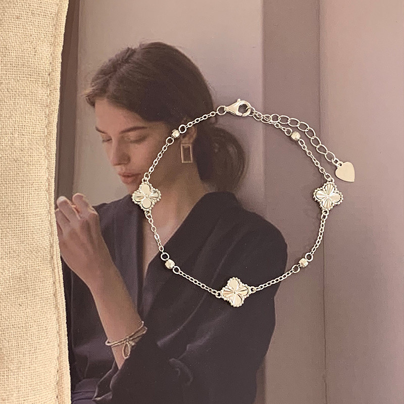 For the evening S925 sterling silver clover bracelet female high value white light luxury exquisite and huge good-looking silver jewelry bracelet