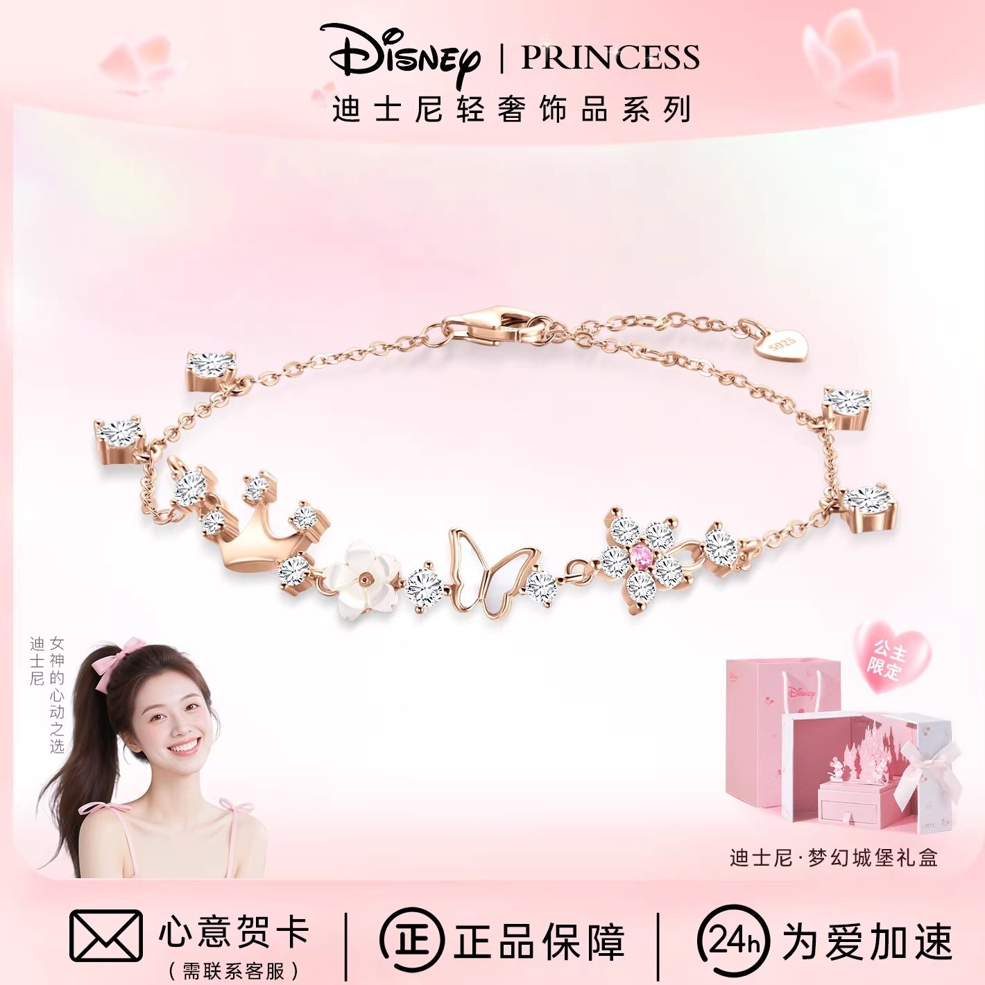 Disney sterling silver butterfly bracelet women's 2025 new women's light luxury niche high-end exquisite silver hand jewelry girls