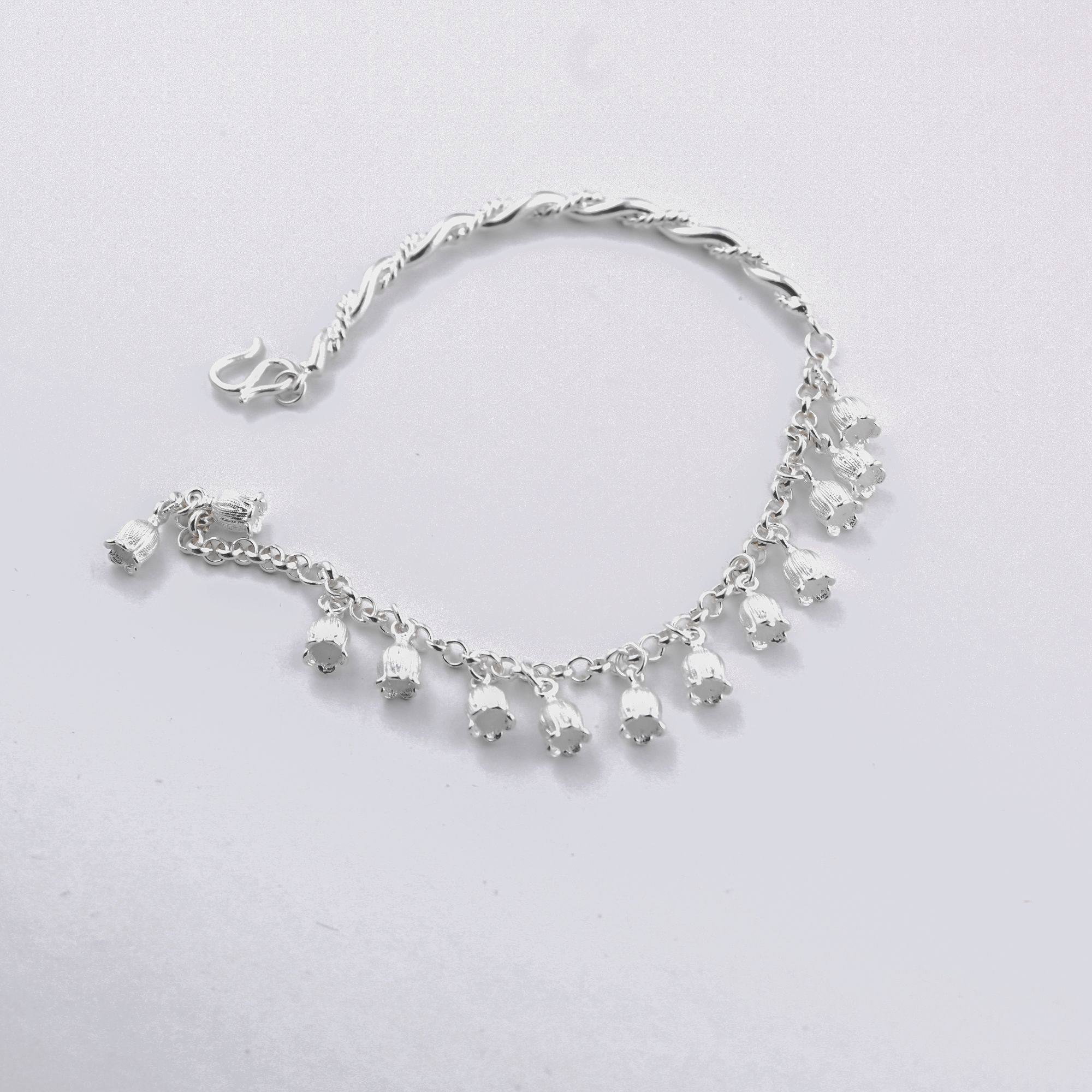 Pan Shixue silver jewelry|Intangible cultural heritage handicraft|Bluebell flower twist half bracelet bracelet foot silver
