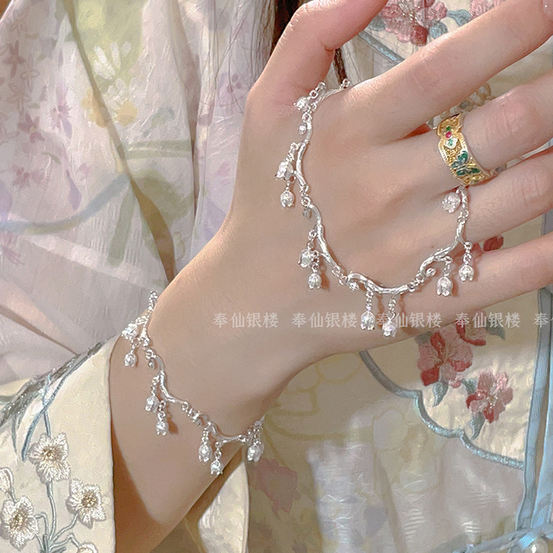 "Lily of the Valley" new Chinese pure silver bracelet female flower branch flower national style bracelet niche design high-end gift