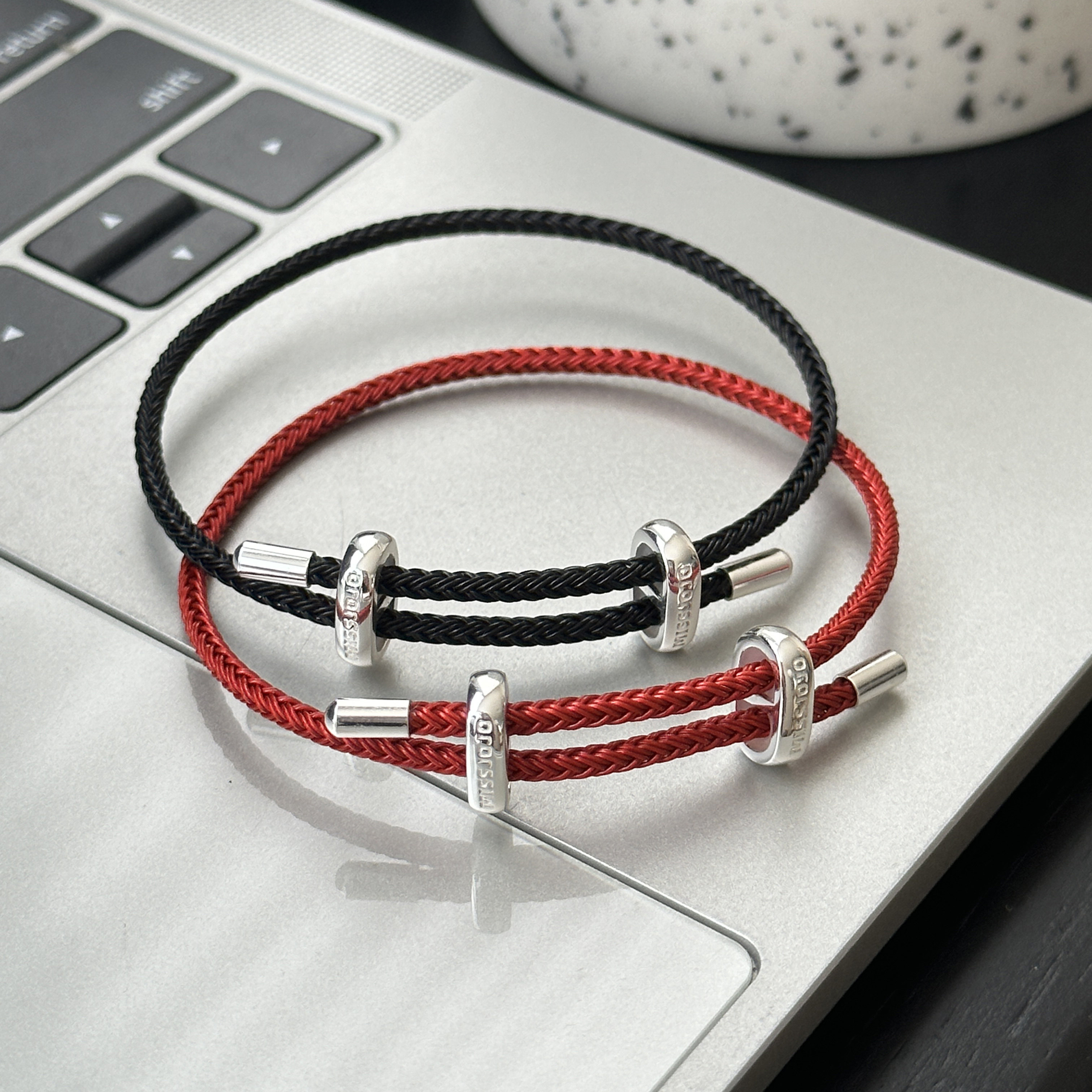 MISS JOJO original design fashionable and versatile temperament female red and black soft steel wire S925 sterling silver bracelet 3863