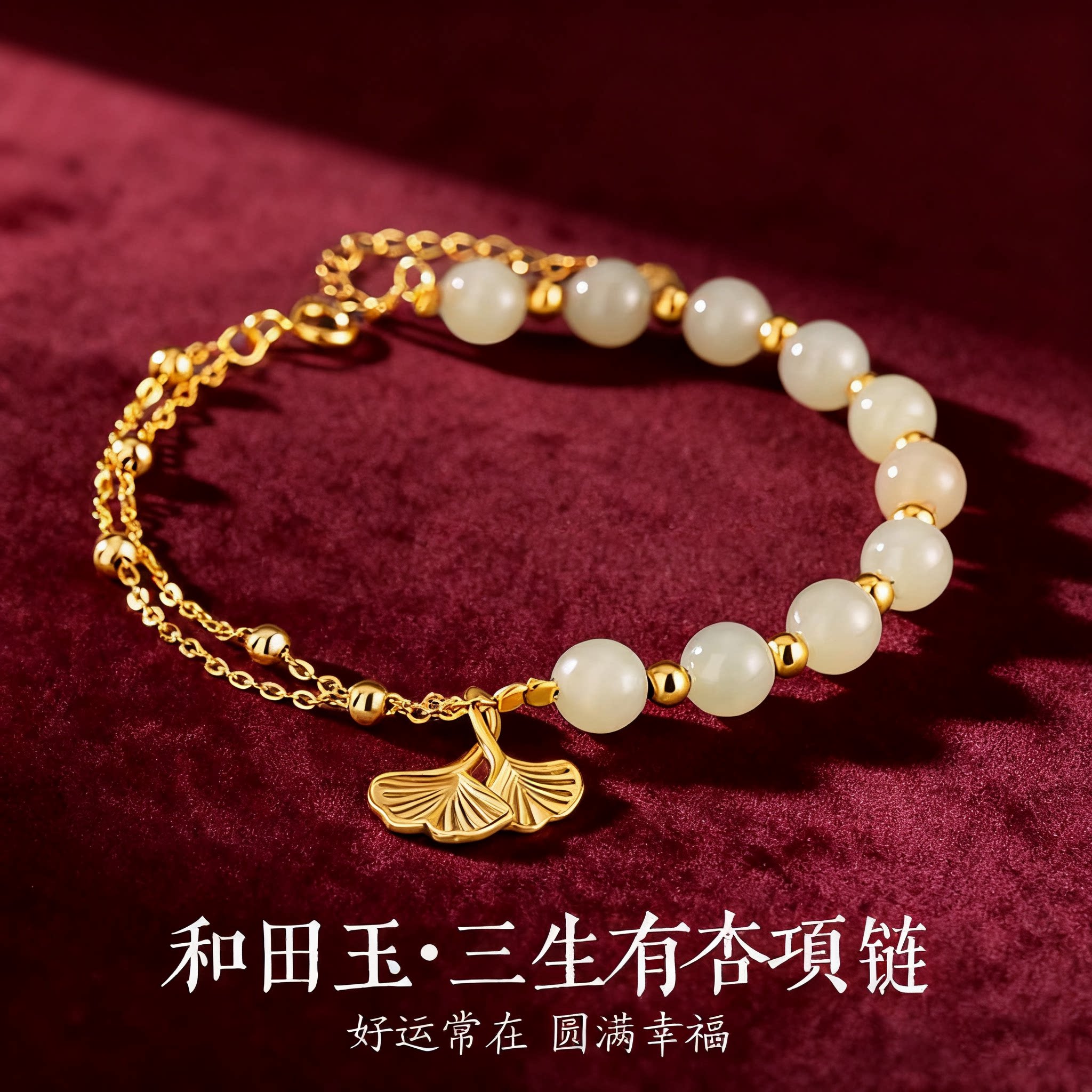 Sansheng is fortunate to have sterling silver 925 Hetian jade bracelet, new Chinese national tide flower bracelet, niche ins ginkgo biloba bracelet