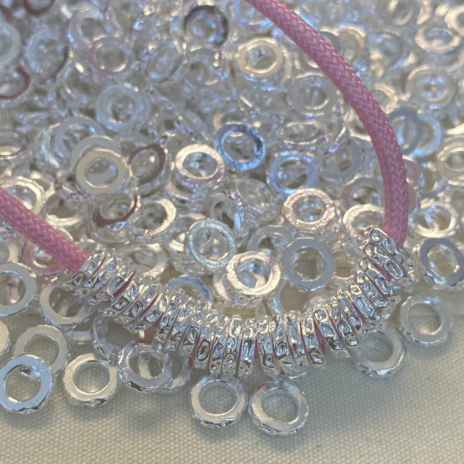 Pure silver 999 sterling silver hammered solid disc wrapped with beads, loose beads, large aperture spacers, hand-woven drawstring accessories