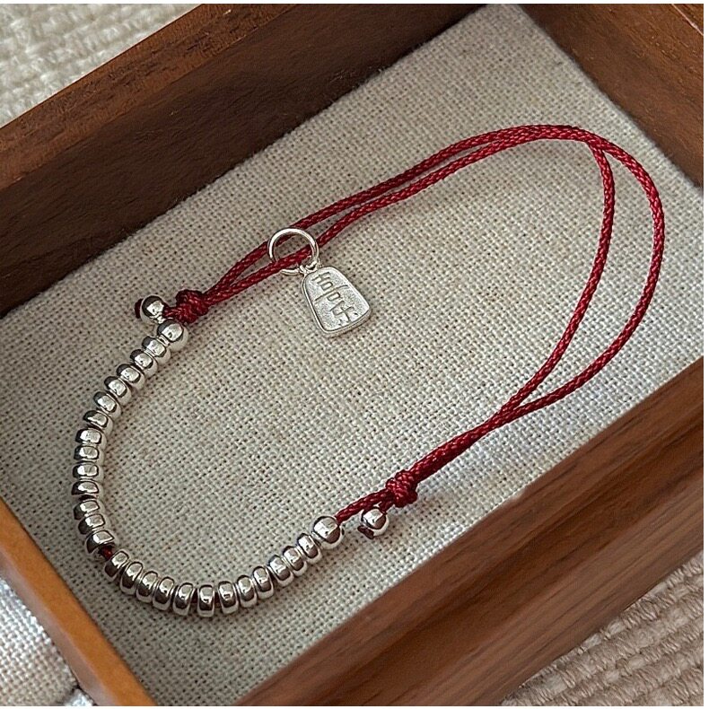 Extremely fine sterling silver transfer beads, red rope bracelet, ankle chain, men's and women's natal year, safe and good luck, hand-woven bracelet, ankle rope