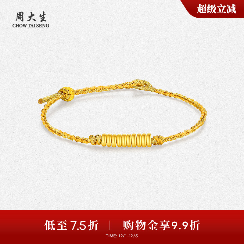 Chow Tai Sheng's gold good luck coil bracelet foot gold hard gold beaded bracelet coil wrapped gold to give his girlfriend a birthday gift
