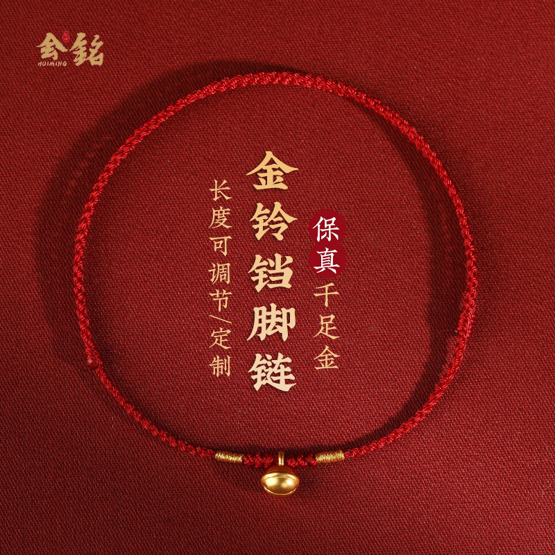 999 gold small bell anklet feminine summer hand-woven ultra-fine pure gold ankle rope natal year bracelet for men