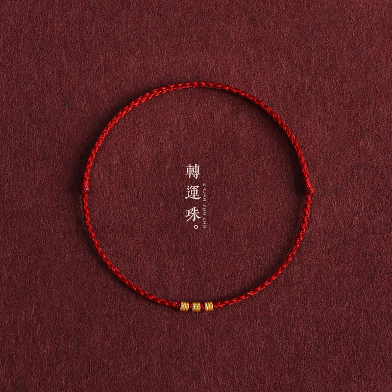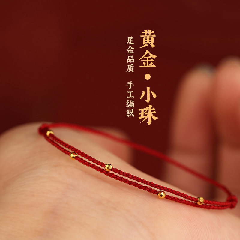 999 pure gold mini gold transfer beads red rope bracelet ankle chain men's and women's birth year peace extremely fine woven bracelet