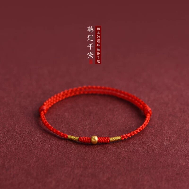 Putuo Mountain Cultural and Creative Collection 999 pure gold transfer bead natal year bracelet women's men's woven red rope gift bracelet