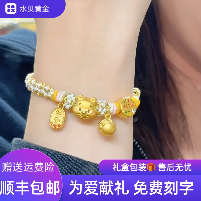 Shenzhen Shuibei gold Winnie the Pooh cartoon 999 foot gold bracelet Ping An Fu brand bracelet children's girlfriend gift