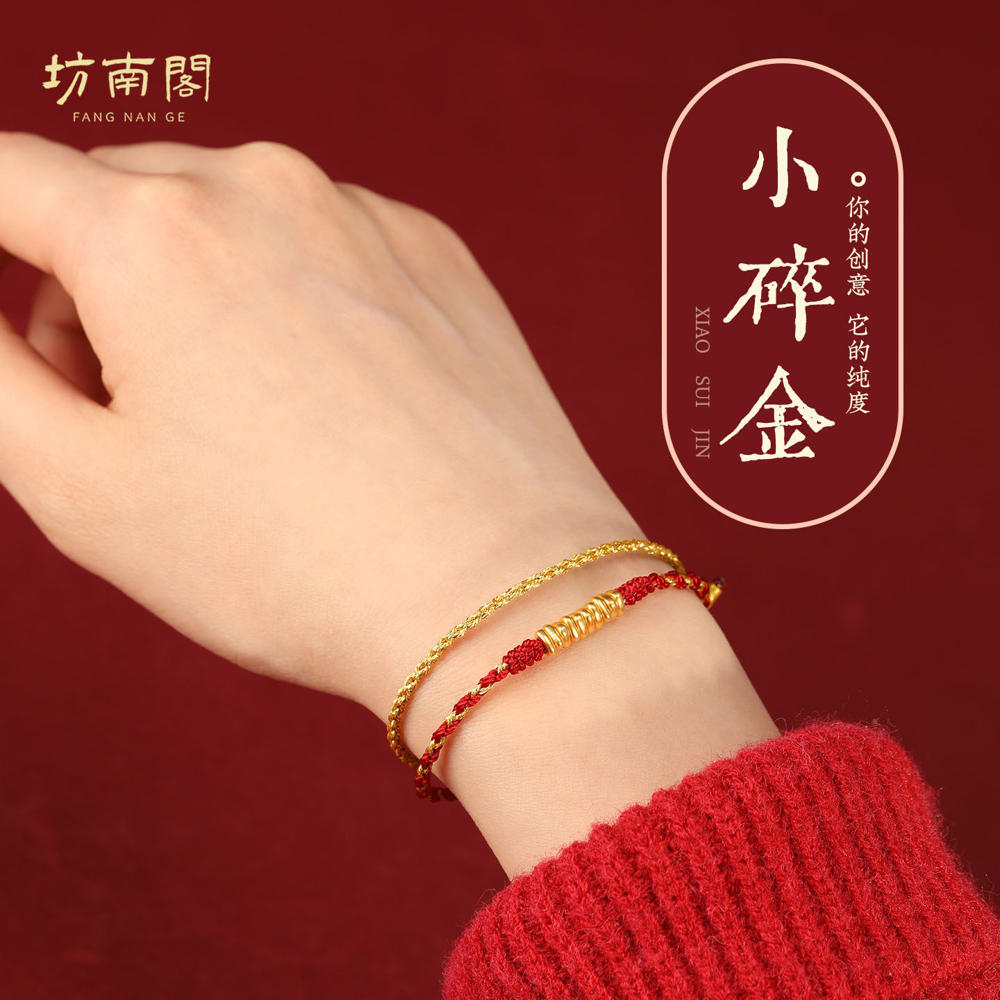 Fangnan Pavilion 999 pure gold mini transfer beads handmade fine red rope bracelet girls 24K gold small foot rope