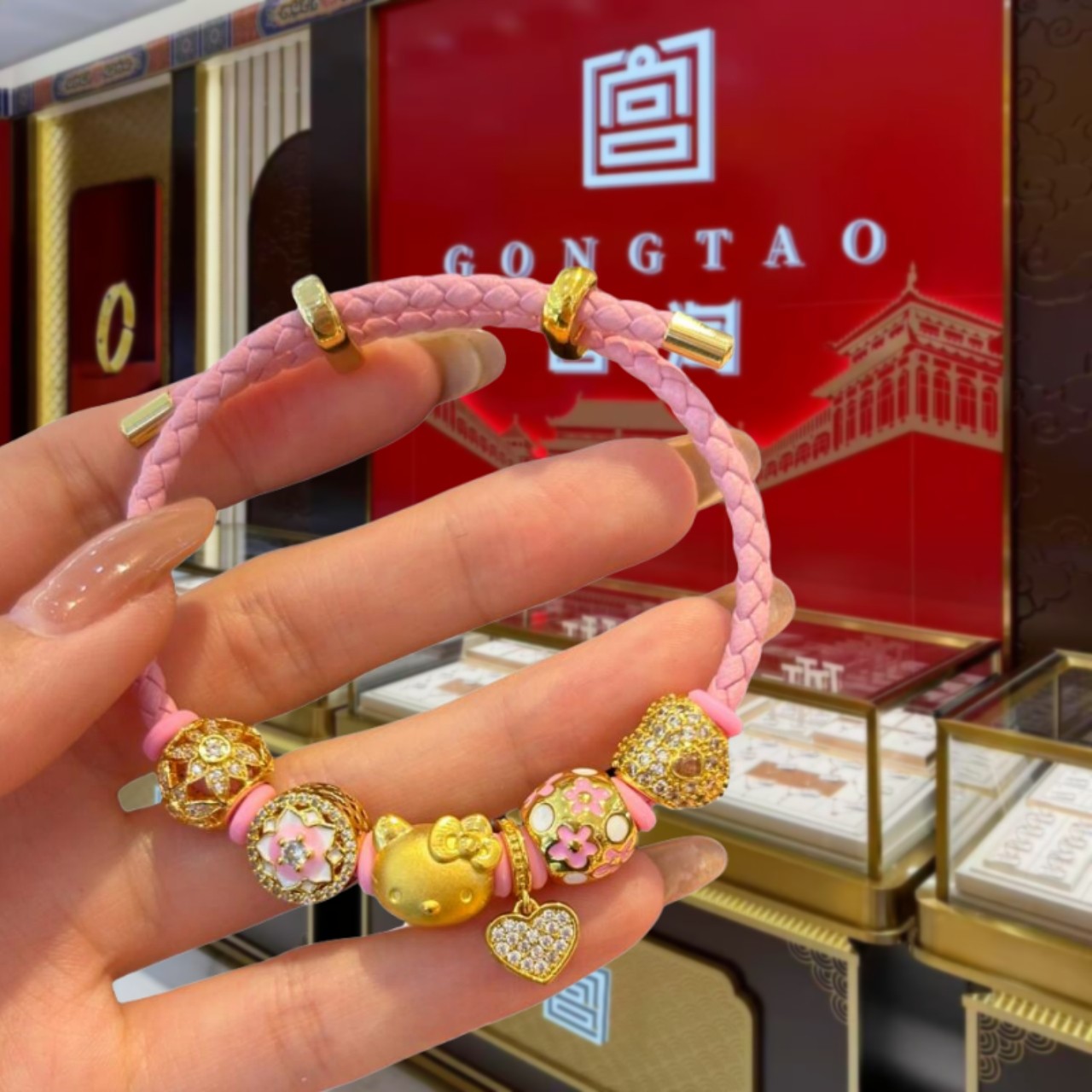 Shenzhen Shuibei gold helloKitty cat bracelet female 999 pure gold silver transfer bead woven red rope bracelet
