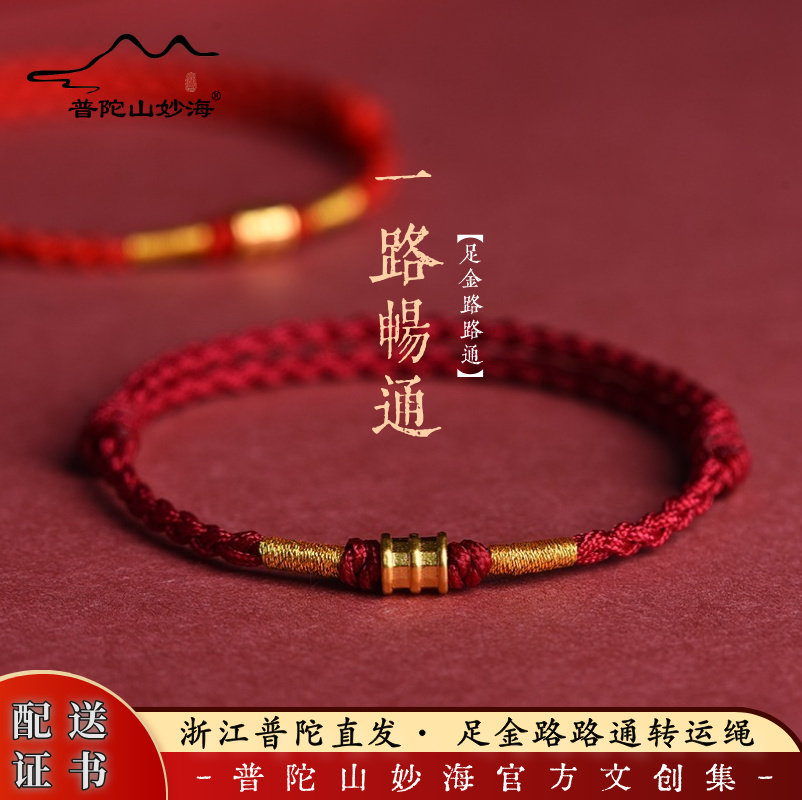Putuo Mountain, Miaohai Golden Road, Lutong, red rope bracelet for men and women, 999 pure gold, natal year, horse, beads, beads, braided rope
