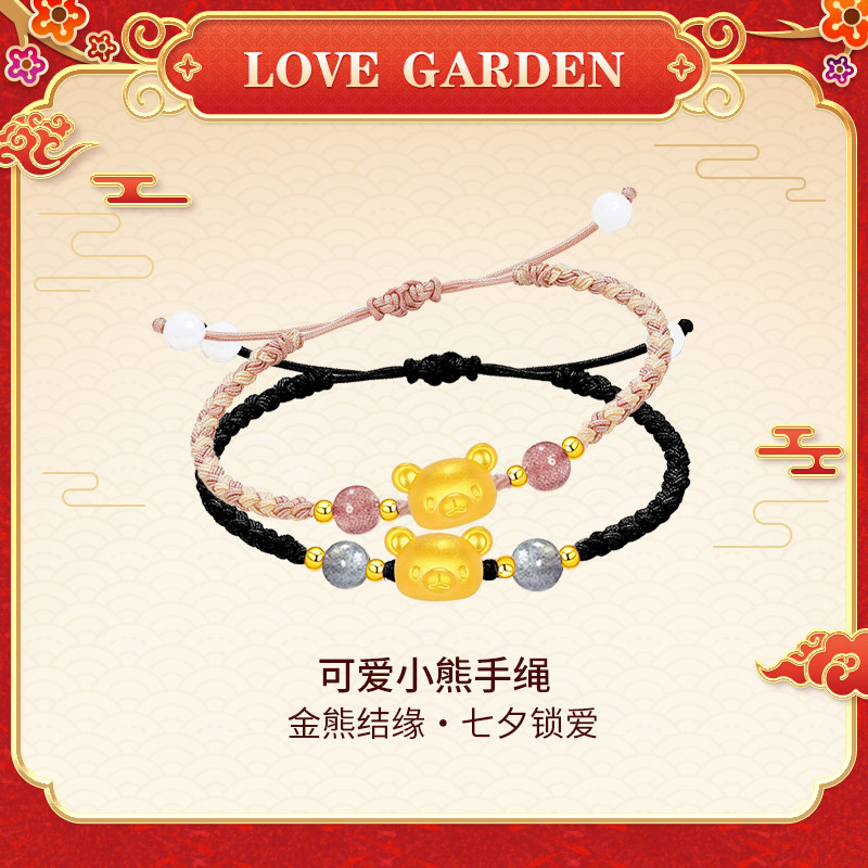 Love garden Qixi "Golden Bear Bond, Qixi Lock Love" bracelet couple bracelet lock love for a lifetime