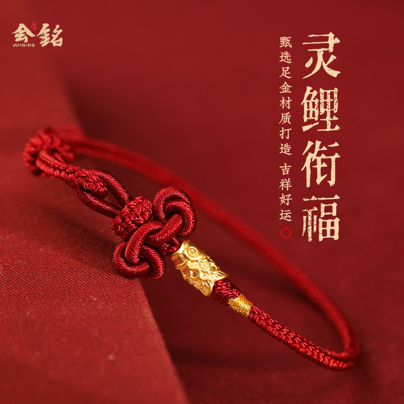 999 pure gold koi good luck red rope bracelet female 2025 new gold woven exquisite bracelet male gold list title