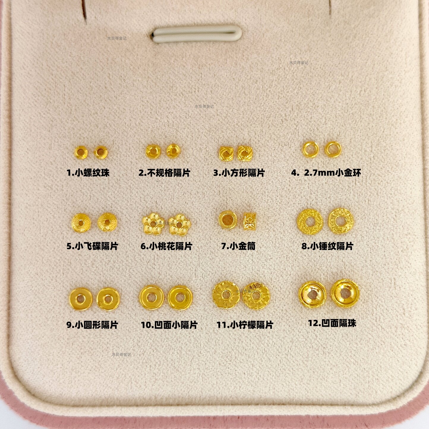 Pure gold 999 pure gold small spacer gold small square peach blossom flying saucer hammer pattern round concave small bead gold hand ornament G