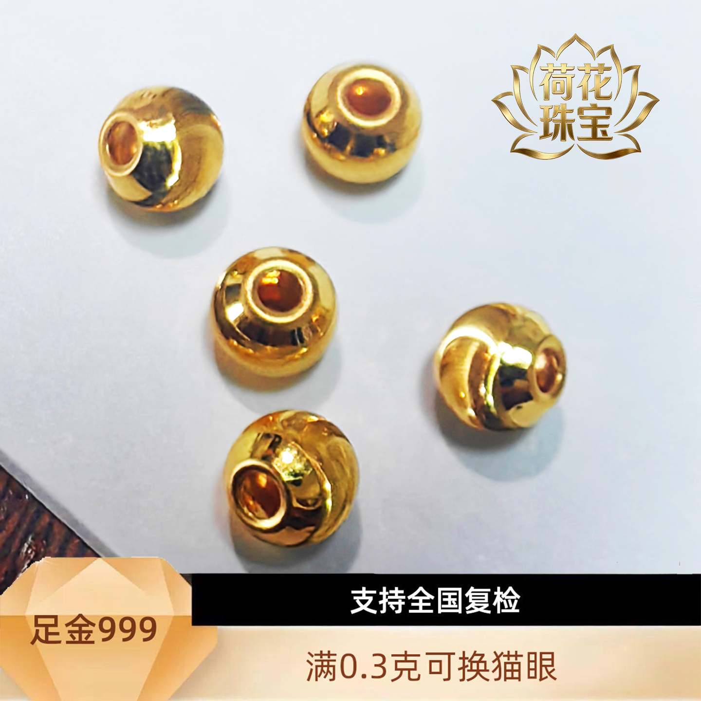 【Lotus】Cat's eye beads transfer beads 999 pure gold small gold beads bracelet beads DIY loose beads weaving 3D hard gold
