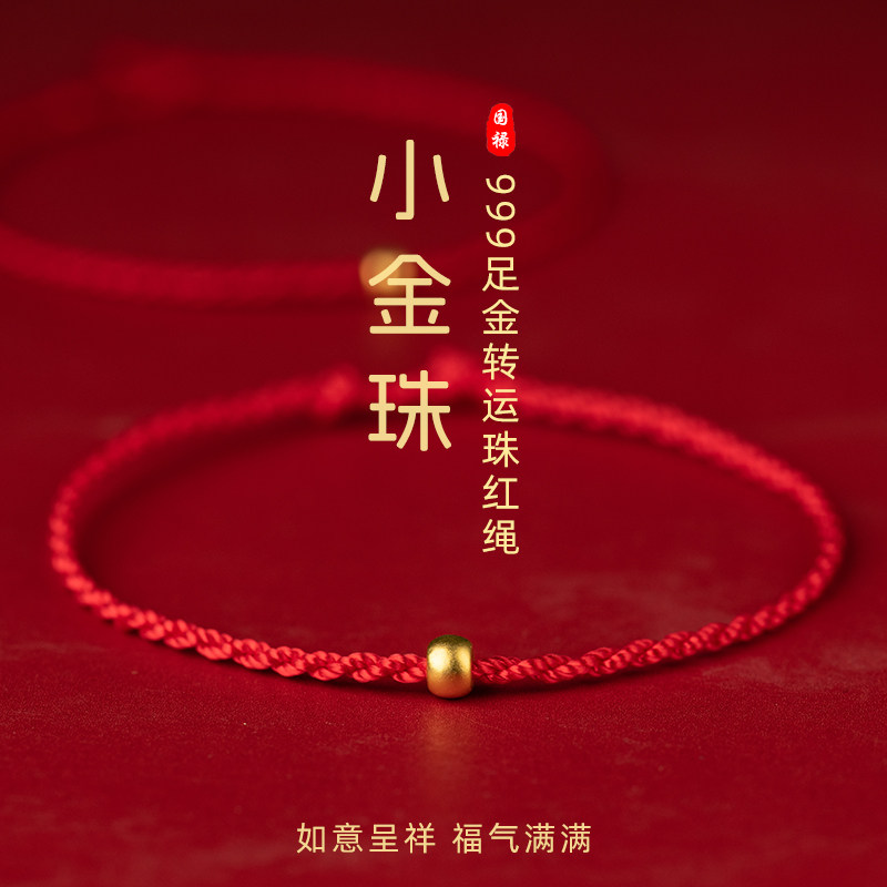 Guolu 999 gold small gold bead red rope pure gold transfer bead braided rope bracelet natal year couple safety bracelet