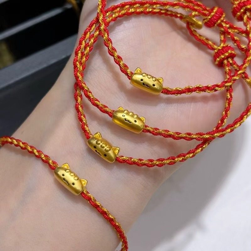 Ultra-fine pure hand-woven 999 pure gold small spacer Natal year hand-woven red rope bracelet ankle strap certificate