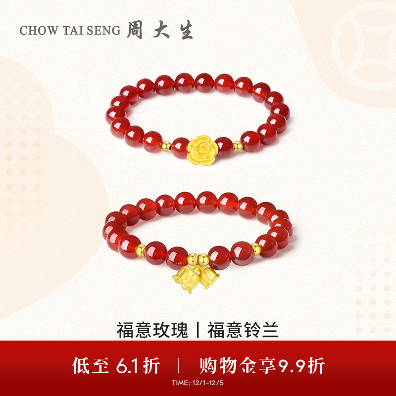 Chow Tai Sang gold bracelet women's pure gold chalcedony lily of the valley rose bracelet birthday gift for girlfriend high-end
