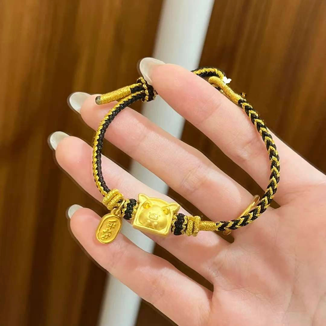 Shenzhen Shuibei Pure Gold 999Lu Toast Bread Pig Transfer Bead Cute Zodiac Cartoon Bracelet for Girlfriend