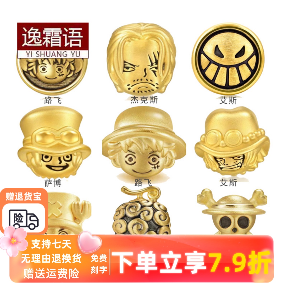 999 pure gold One Piece gold transfer beads Devil fruit Luffy/Chopper 3D hard gold bracelet beaded men's and women's models