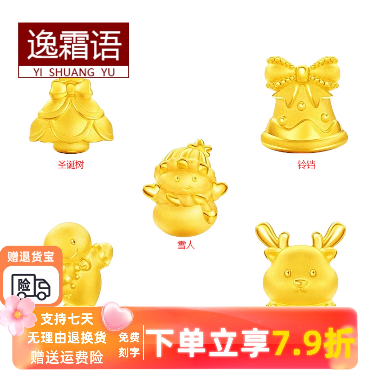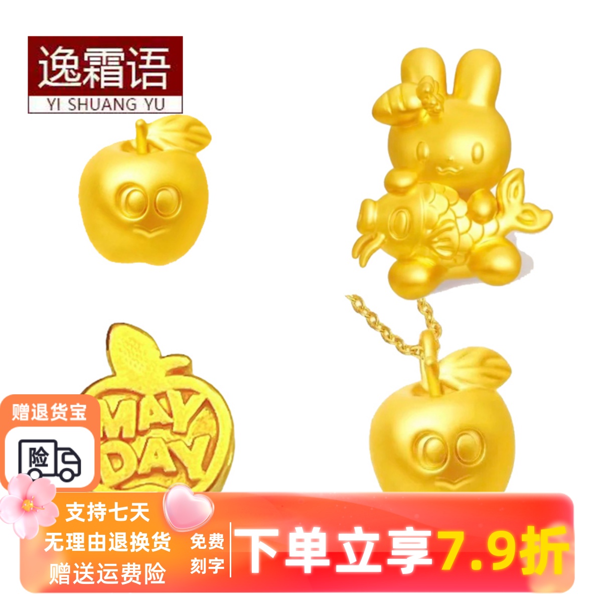 999 pure gold enamel color double-sided peach blossom matching card 2 gold bean bean bracelet C8103